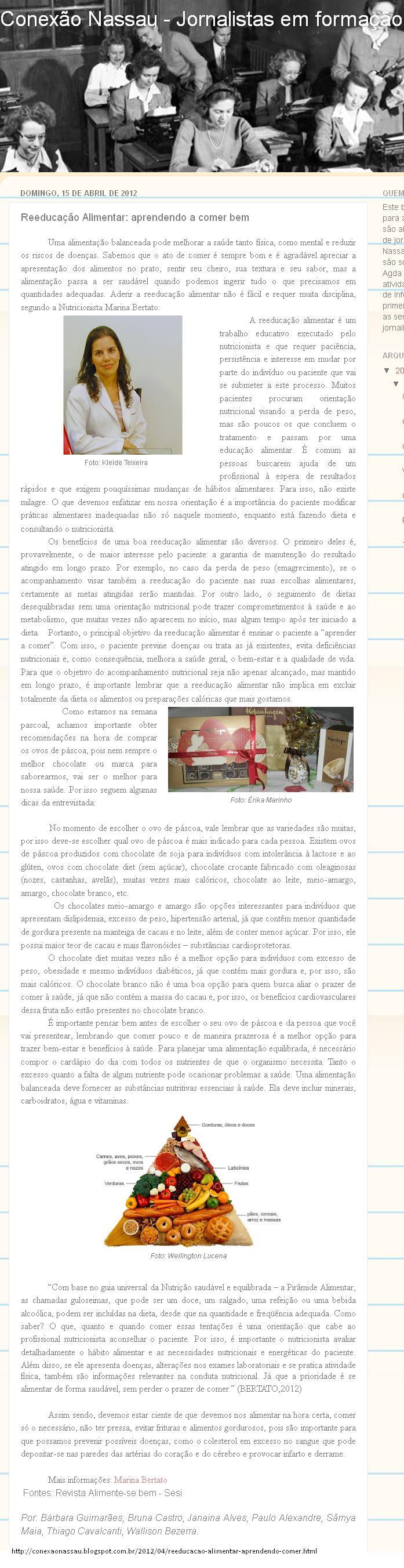 - Nutricionista da Clínica DERMACAP na área de Nutrição Clínica (João Pessoa-PB)